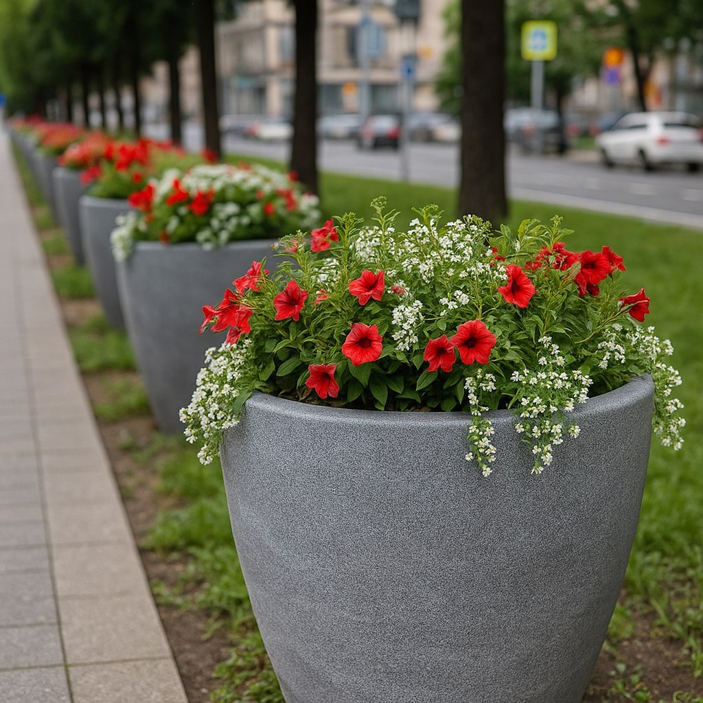 Минималистичный дизайн и современный стиль вазона делают его универсальным декоративным предметом, который можно использовать для оформления входной группы зданий, для благоустройства парков, скверов, городских площадей и других локаций.